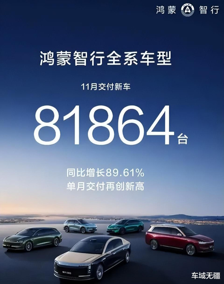值得一提的是,鸿蒙智行作为一股聚合性力量,从年初月销约3.5万辆,到11月单月突破8.2万辆,增长幅度超过两倍,全年销量有望突破55万辆。