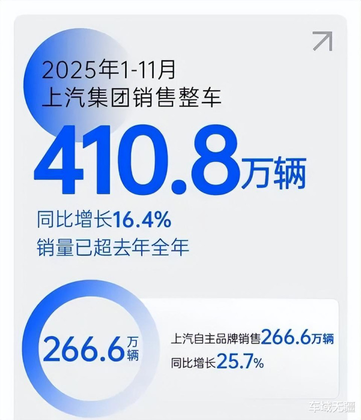 从目标完成度看,比亚迪已完成全年460万辆目标的约90.9%,上汽集团则完成了450万辆目标的约91.29%。两家的竞争格局反映出不同发展路径的交锋。比亚迪依靠全系新能源产品和垂直整合的供应链优势,而上汽集团则采取“燃油+新能源”双线并进的策略。